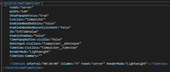</telerik:RadTimePicker>You can use the same approach for removing other attributes as well.