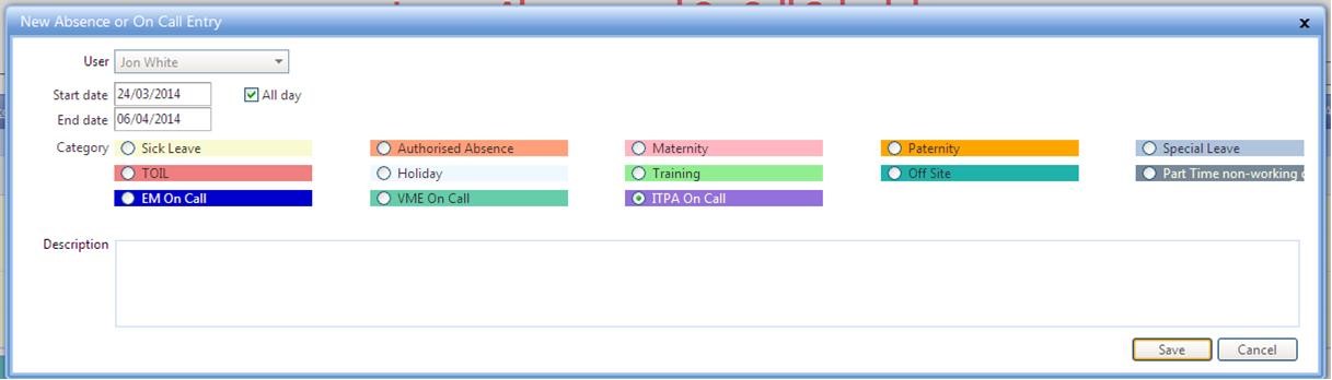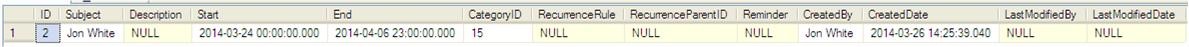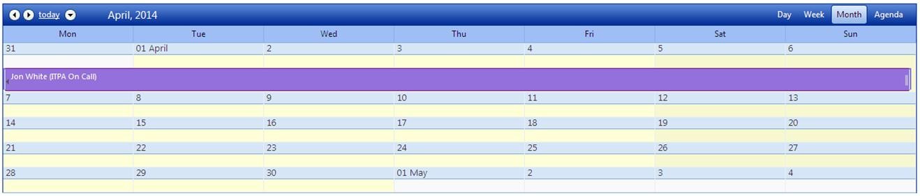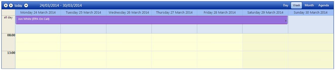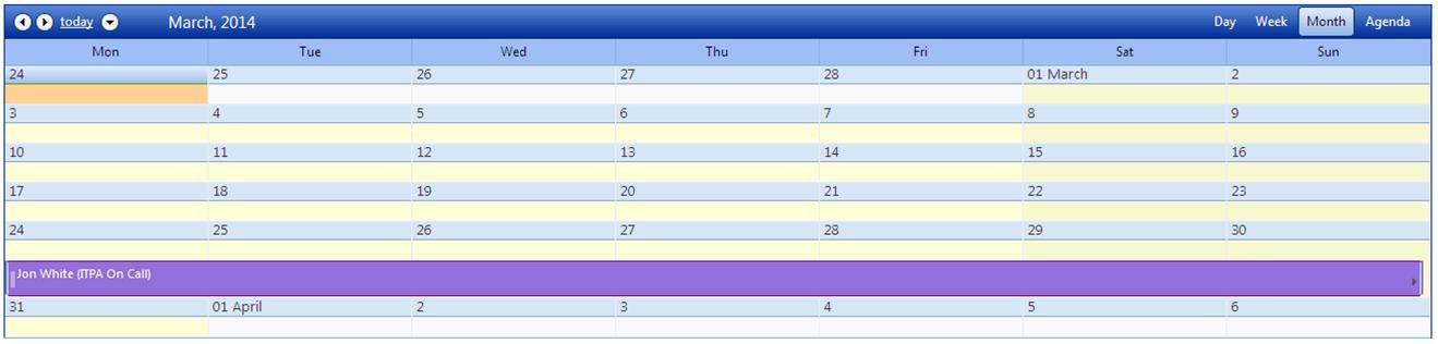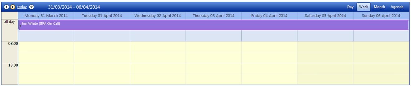 - The creation of an all day appointment which starts on 24th March 2014 and ends on 6th April 2014