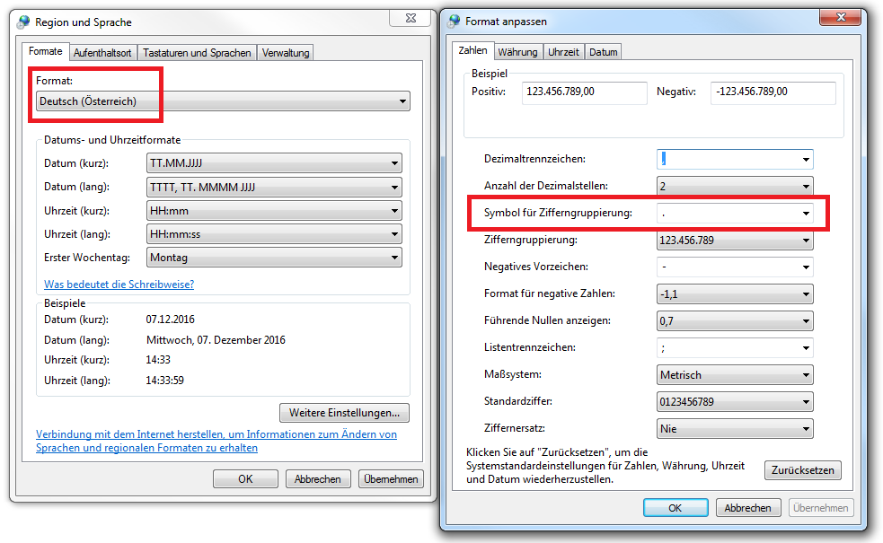 Please refer to the screenshot demonstrating that when the de-AT culture is set the grouping separator is "." and the decimal separator is ",":