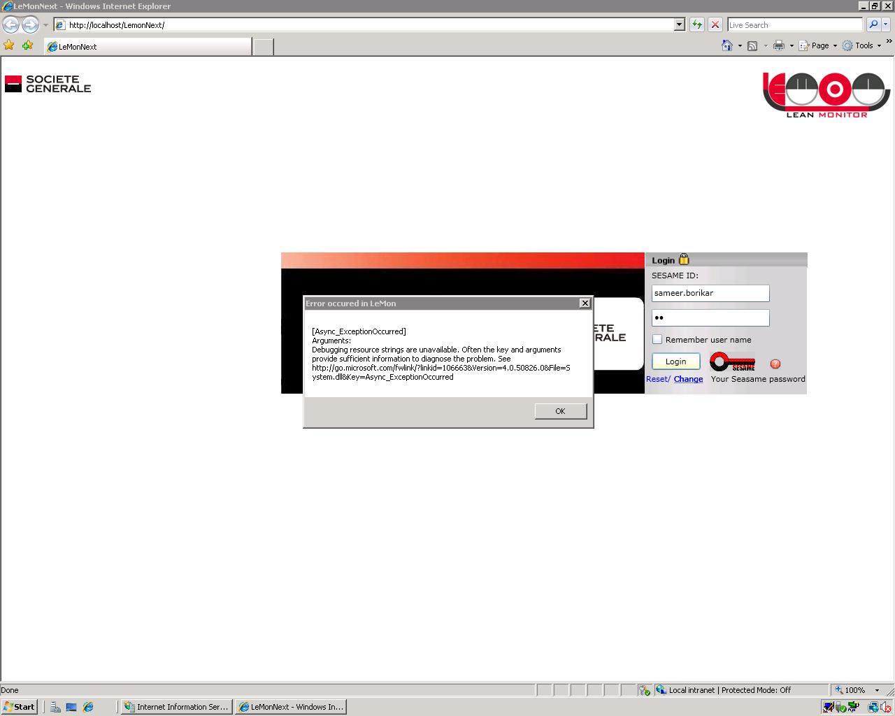 We are using Rad control for silverlight Q2 2010.Our application is hosted on IIS 7 Windows server 2008.But the issue is when the credentials are given and log in button is clicked it gives the below error.But when run in local dev machine its working fine.