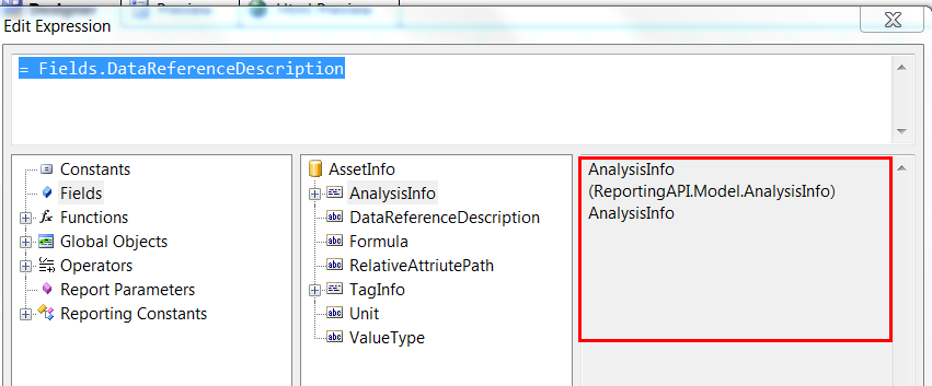 Please feel free to log a feature request for having option to add and display descriptions of types and properties in the Expression Editor. Features are considered for implementation based on the demand.