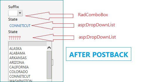 - This applies to only default asp.net drop downs the telerik ones work fine - this is an issue for us