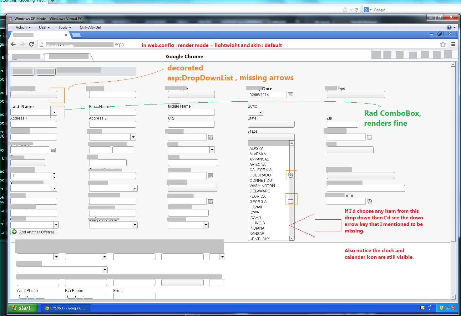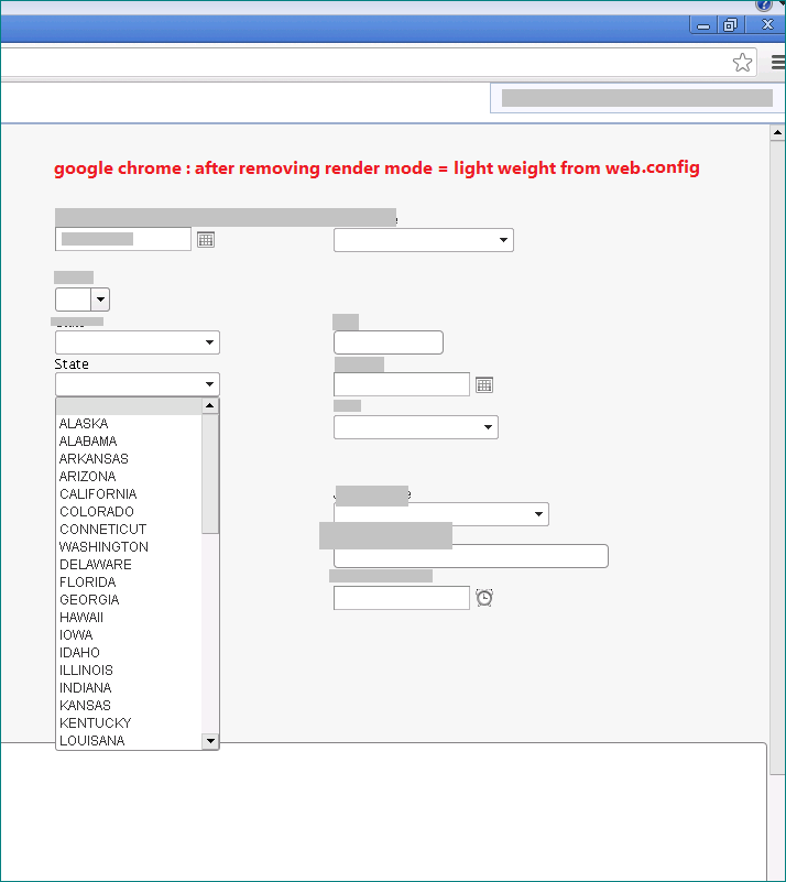 PLEASE NOTE that if I remove <add key = "Telerik.Web.UI.RenderMode" value = "lightweight" /> from my web.config, the drop downss DO render correctly, as I have shown in my screen shots in previous post.