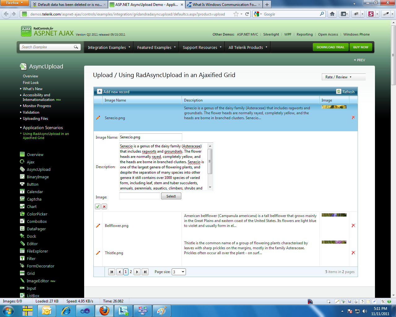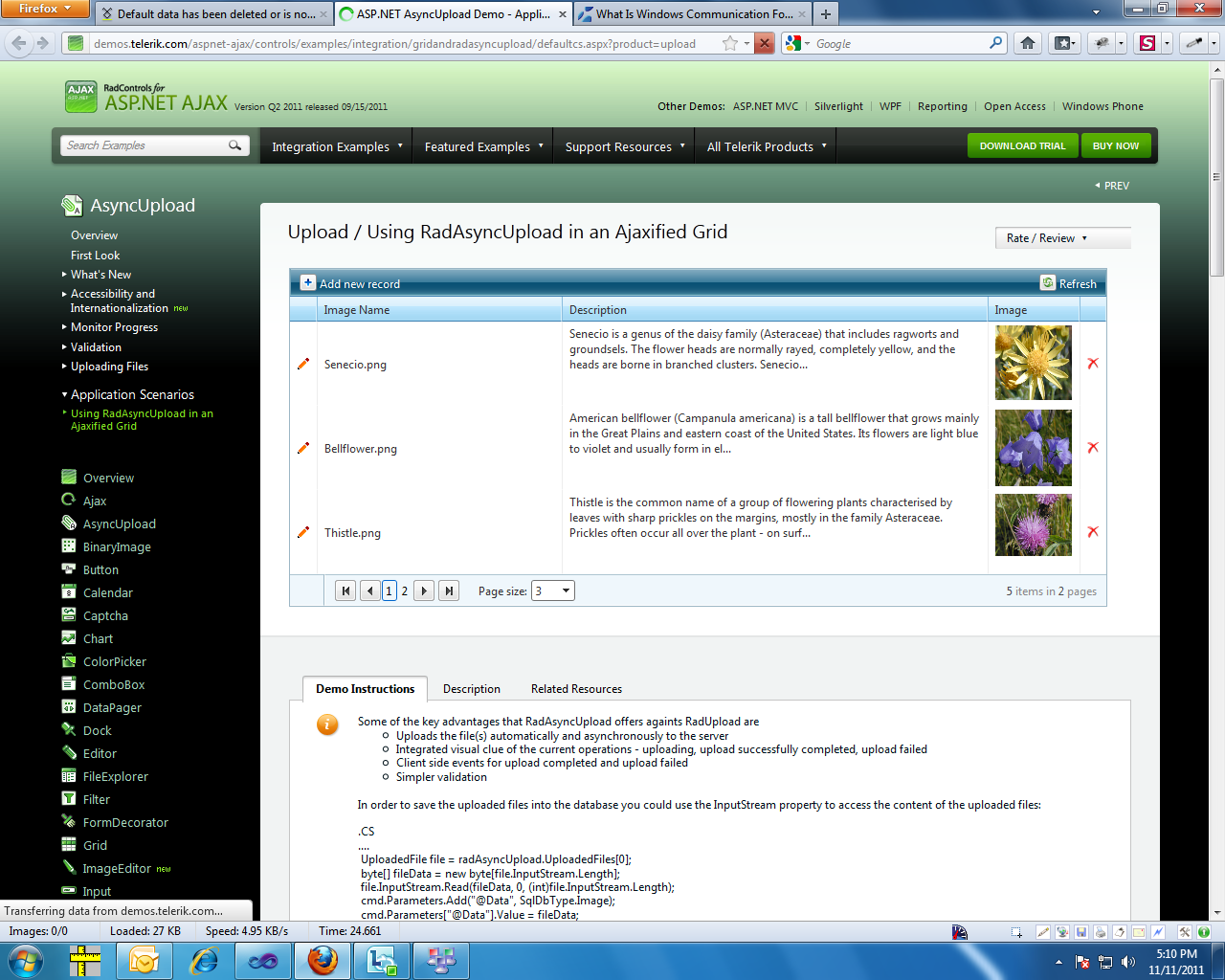 http://demos.telerik.com/aspnet-ajax/controls/examples/integration/gridandradasyncupload/defaultcs.aspx?product=upload