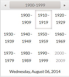 The customer has requested that instead starting off showing the month view, that it start by showing the century, then select decade, then select year, then month, and then show the month view.