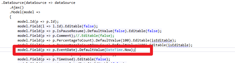In a grid, we set up a datetime field with default value as datetime.now in the cshtml view file. However, we found the issues: