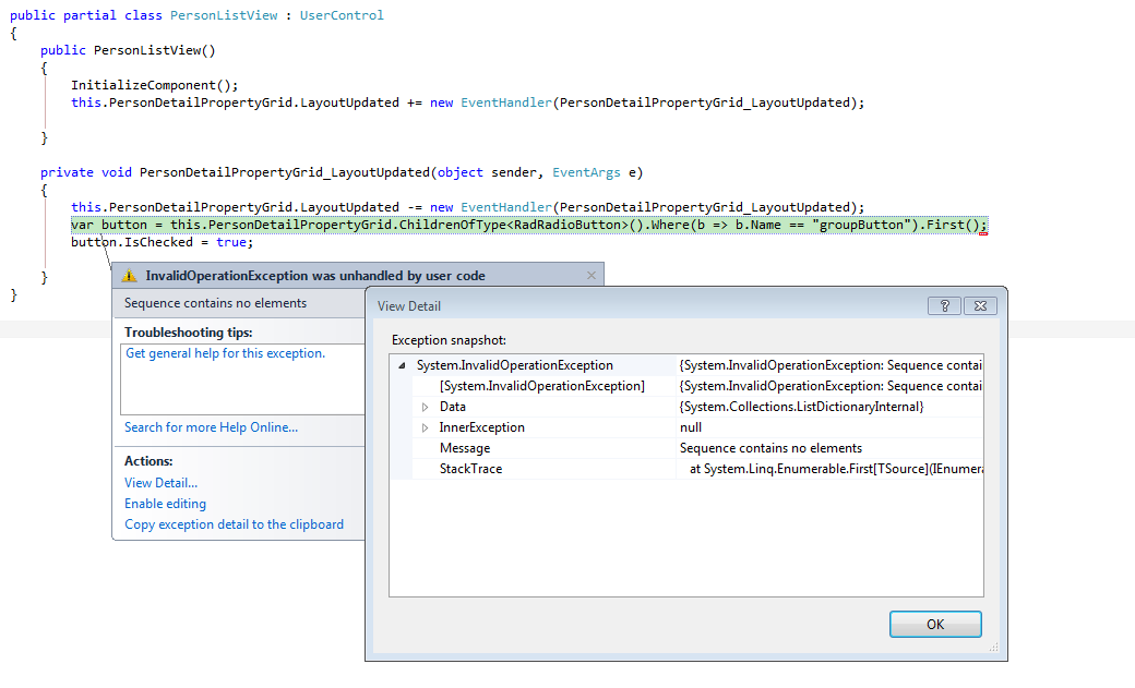 var button =this.PersonDetailPropertyGrid.ChildrenOfType<RadRadioButton>().Where(b => b.Name =="groupButton").First();