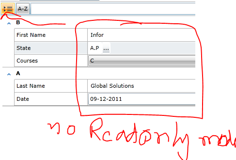 2)when i try to click groupButton and sortButton the result templates are different. present am in groupButton and texboxes are Editable mode, if am click sort button the texboxes are mode of radpropertygrid loaded time(either readonly are editable)