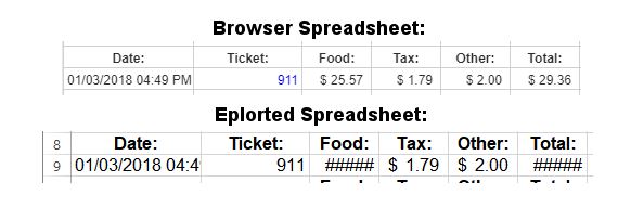 and the values in cells turn to #####. An Arial 12px in the browser should be equivalent an Arial 9pt in Excel.