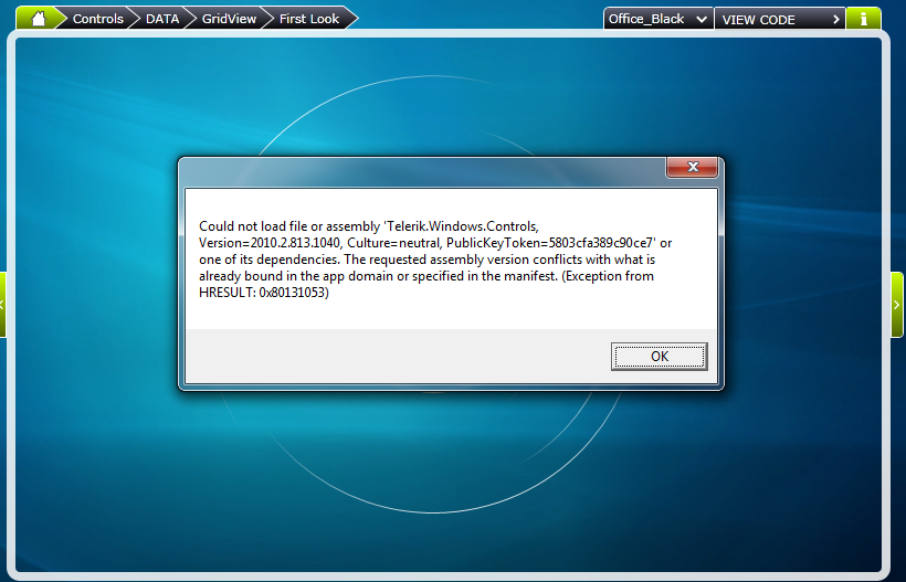 There is an exception being thrown on the Grid View First Look page, see attached screenshot.
