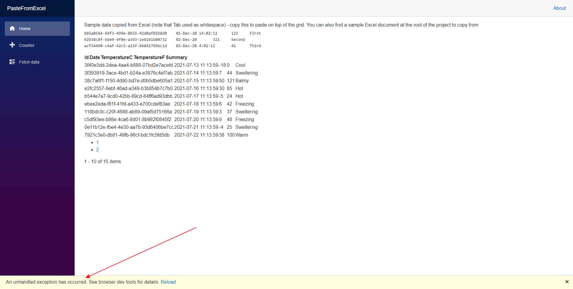 I downloaded the Telerik UI for Blazor Trial (version 2.25.0) and I'm investigating the "paste-from-excel" demo (first one I have to go through) from GitHub paste-from-excel (.Net 5.0). Unfortunately I get the following runtime errors (see screenshot).