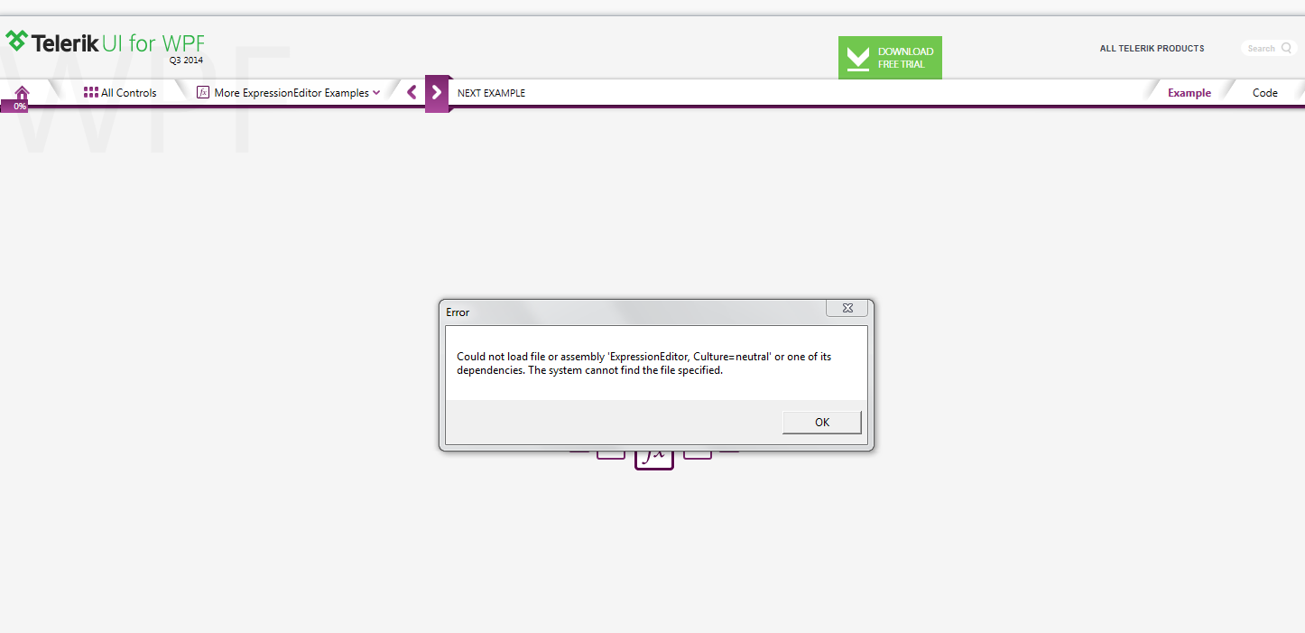 Your Demos for Expression Editor in WPF are broken on both the installed version and the source.