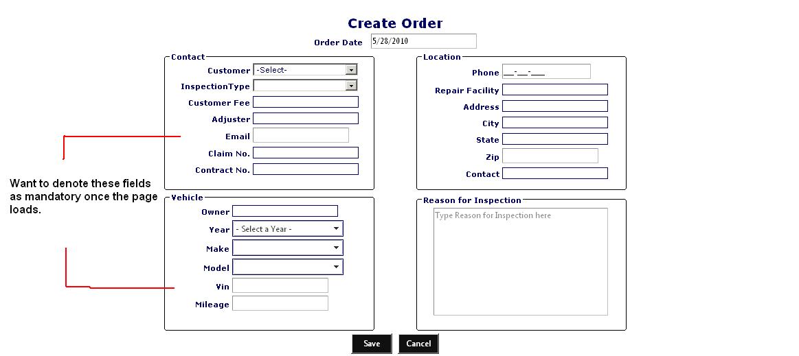 I had used a asp:textbox for the Email text box and for validation i had used RadInputManager and Telerix:RegExTextBoxSetting . Now how can i denote the mandatory field for this email once the page loads but not after the user clicks the save button.