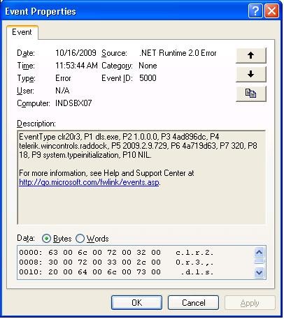 We are using the RadDoc feature in our application. After installing using click once or doing Xcopy it gives an unexpected error page and when we check the event log it gives the error in the attachment.