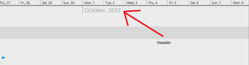 I'm not 100% sure what the header I'm talking about is called but you should be able to see it in the screenshot I'm attaching. The header shows the month, day etc when zoomed in far enough. The problem I'm having is if you zoom out far enough it goes away entirely. This messes up the spacing of some other elements I have created. Is there a way that I can force this to stay on or at the very least know when it is hidden? I don't care if its blank space, I just need it to always take up the same amount of vertical space.