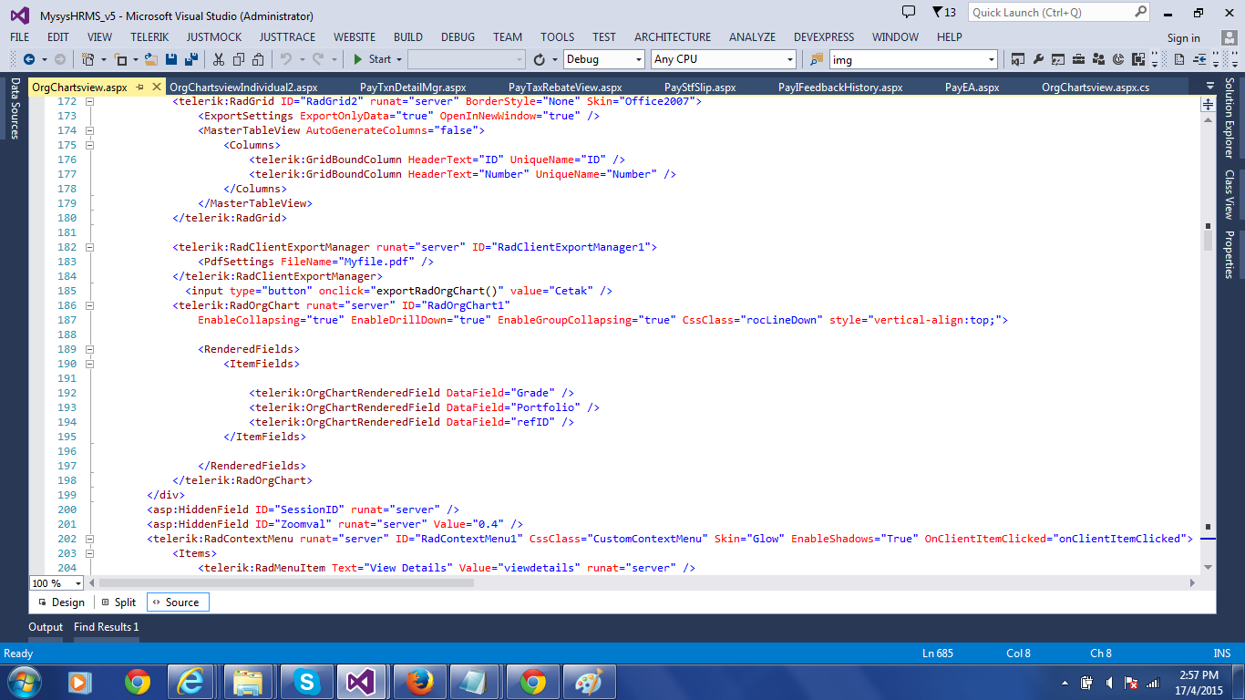 4. Could you please post the part of your code where you declare the RadOrgChart so we can test its export locally?