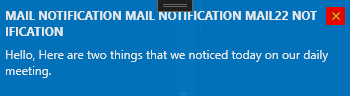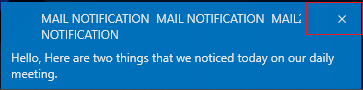 alert.Content = "Hello, Here are two things that we noticed today on our daily meeting.";