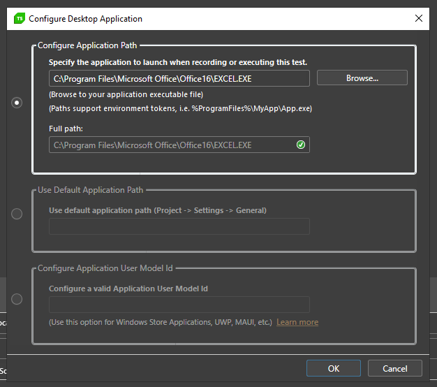 I'm trying to run a desktop test using excel. I have mapped excel via the application path.