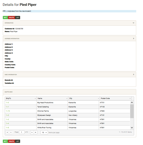 I am attaching a screenshot. You can see the details for a company called "Pied Piper" and at the bottom is a grid that needs to contain all of the ShipTo's related to that particular customer (right now it is displaying all of the ShipTo's. I hope that helps as it is not easy to explain.