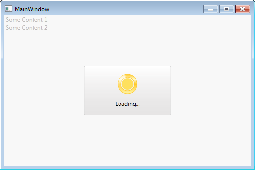 <Window x:Class="BusyIndicatorTest.MainWindow" xmlns:Controls="clr-namespace:Telerik.Windows.Controls;assembly=Telerik.Windows.Controls" Title="MainWindow" Height="350" Width="525"> <Grid> <Controls:RadBusyIndicator IsBusy="True" IsIndeterminate="False" ProgressValue="50.0"> <ListBox> <ListBoxItem Content="Some Content 1"/> <ListBoxItem Content="Some Content 2"/> </ListBox> </Controls:RadBusyIndicator> </Grid> </Window>