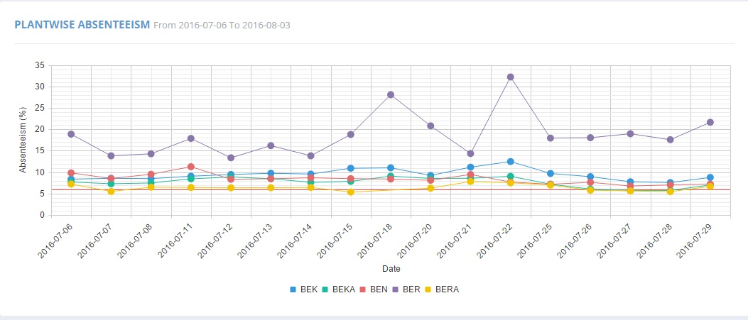 I am using RadHtmlChart control to display the absenteeism of several production plants on a daily basis. To accomplish this I am using the line series and each plant has a line series <telerik:LineSeries> of its own.