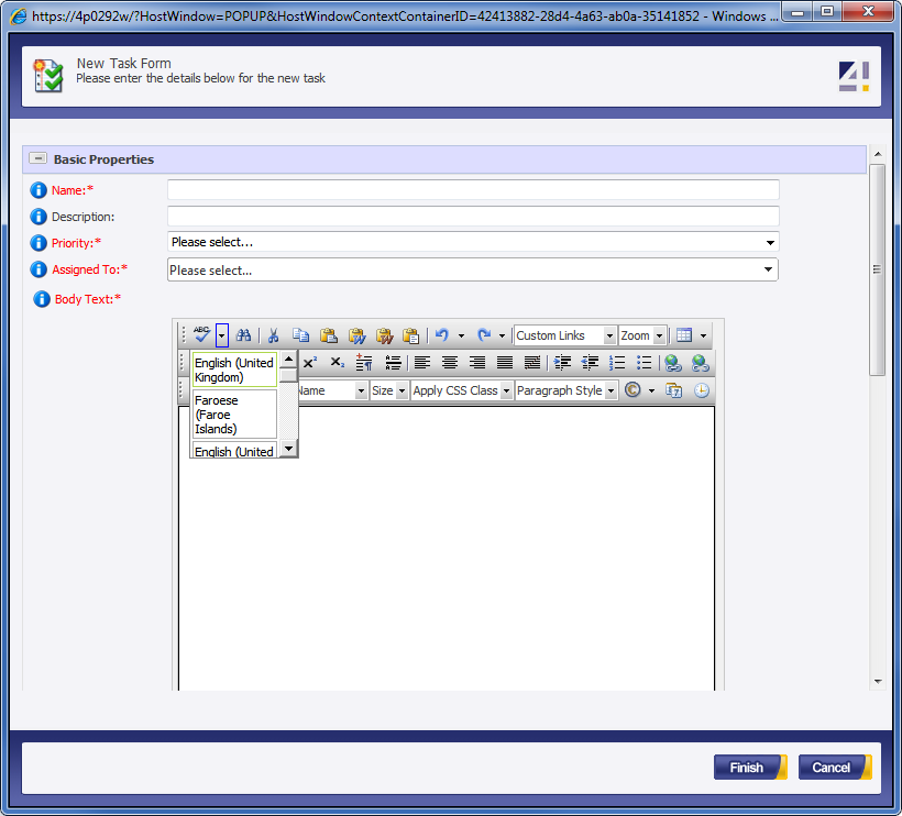 I have had to add some custom values to the available languages in the dictionary drop down list, however I need to make the drop downs width much wider as the descriptions I have used for the languages look squashed.