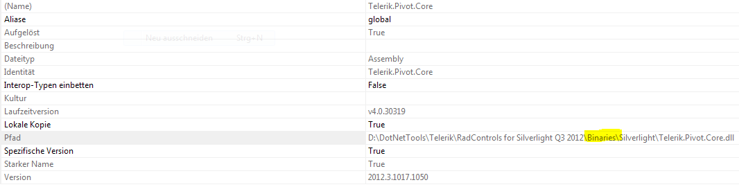 Maybe you could also explain the following behavior. When I add a reference to an assembly in "...\Binaries.NoXaml\Silverlight\Telerik.Windows.Controls.dll" an assembly with this name is referenced but it points to the normal "...\Binaries\Silverlight" directory. I have to manually add a "hint" to the right path in the .proj file.