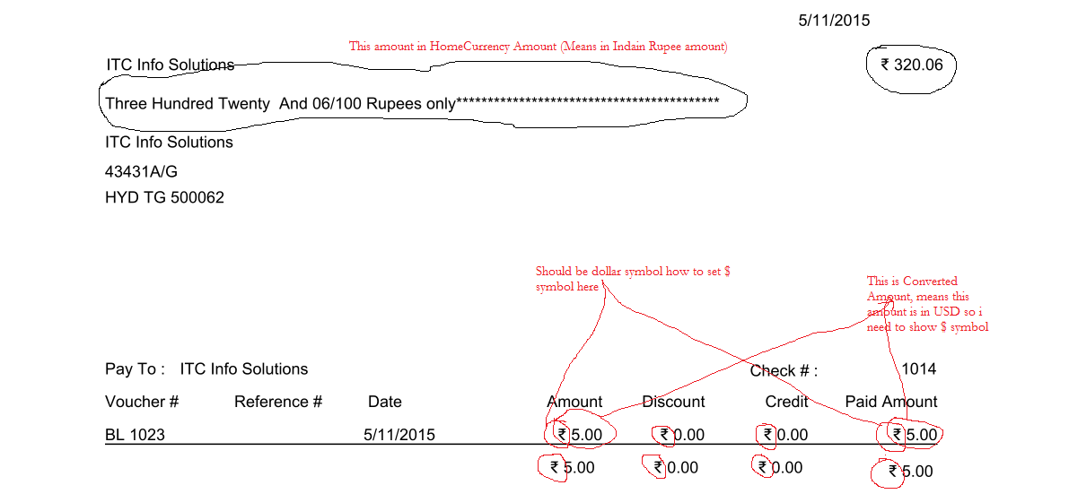 with Dollar or other etc... so at home currency i need to show regional currency symbol and other converted amounts should be with other symbols. how can i achieve those different symbols in a report