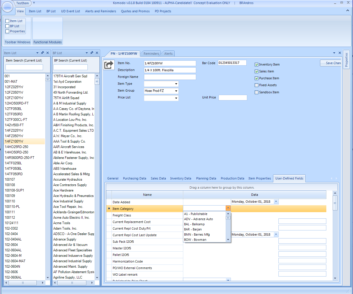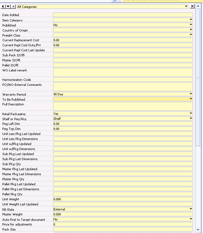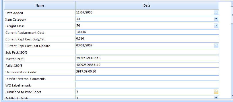 So...my question is this: Is there a way to pass the item code to the PNUDF cell element class so I can set the text of the element to equal what I am seeing in the database? Right now I am populating the drop down menu from another table which I'm not sure how to join (that's obviously a database issue that you can't see...) but I need to get this value from the database somehow keyed off the item code (that is a parameter of the parent PN Item Master class -- the form shows an instance of this class, if that makes sense)