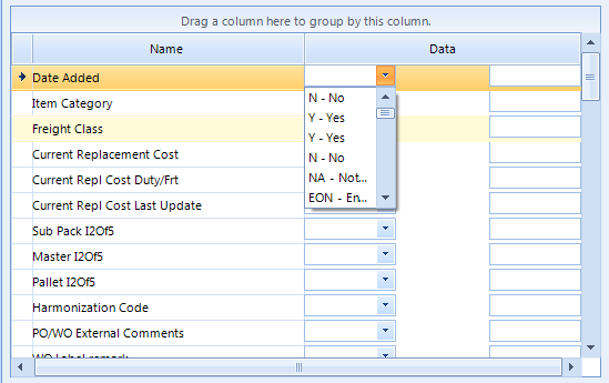 Is there a way to populate different rows drop down lists from the database? For example...I have a field for Item Category that has text values and then a Freight Class category that has integers.