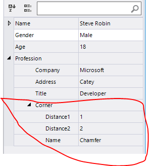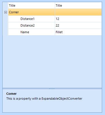 public class Corner { public string Name { get; set; } }public class Fillet : Corner { public double Radius { get; set; } }public class Chamfer : Corner { public double Distance1 { get; set; } public double Distance2 { get; set; } }and a business object,