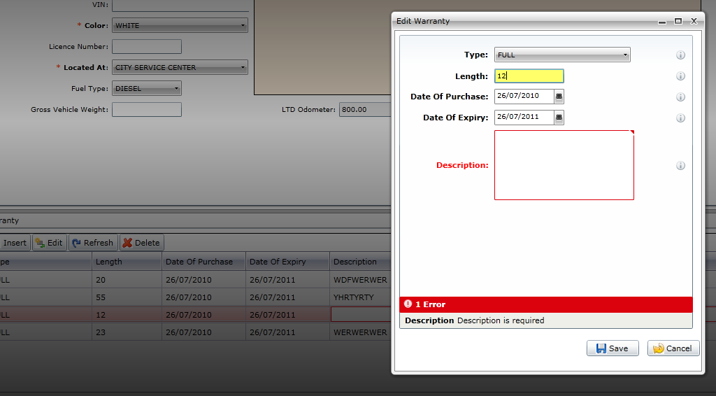 2. When user clicks on Edit button a rad dialog window opens with DDS.CurrentItem displayed in data form. See step2.PNG. Description is required and Data Validation on the form shows it. You can also see that underlying grid, its selected row, also shows data validation message.