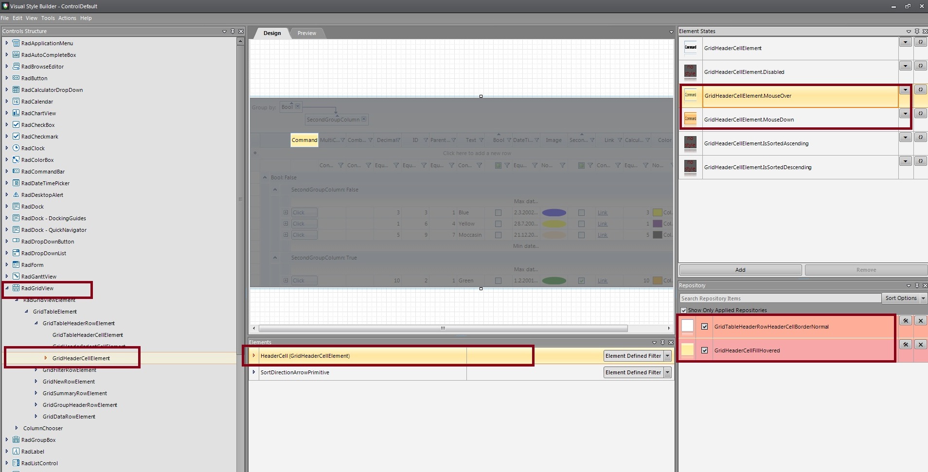 I have a DataGridView with TelerikMetro theme. I've set EnableHotTracking to False, but header cells still follow mouse hover events, e.g. border around header cell is highlighted when mouse is over header cell.