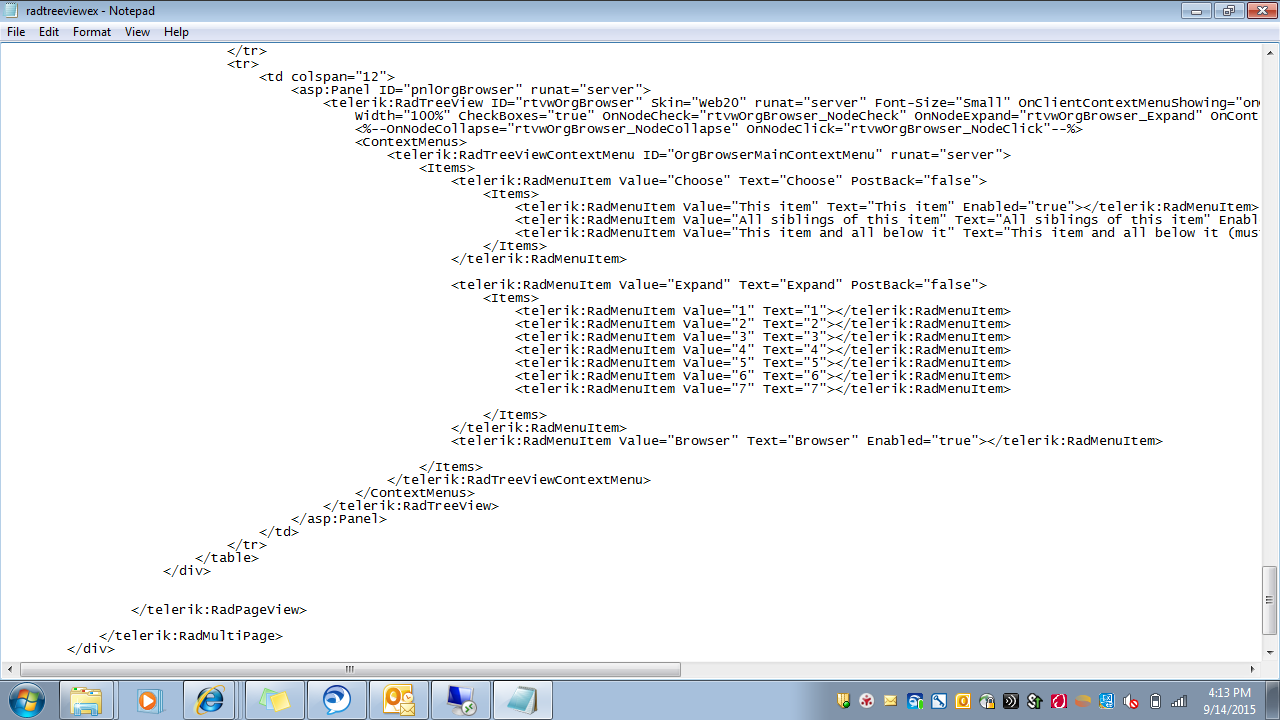 <telerik:RadTreeViewContextMenu ID="Org1" runat="server">