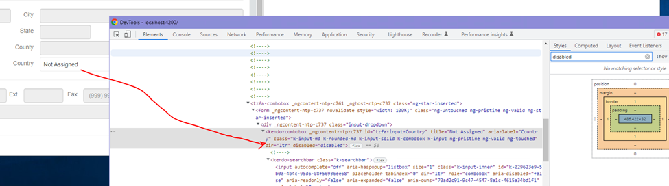 In earlier version, we were able to disable the combo box. I see that the combo box is applying the style See image below.