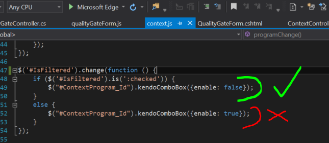Sets .enable() method on the combo box depending on the statement it goes to (highlighted in orange).