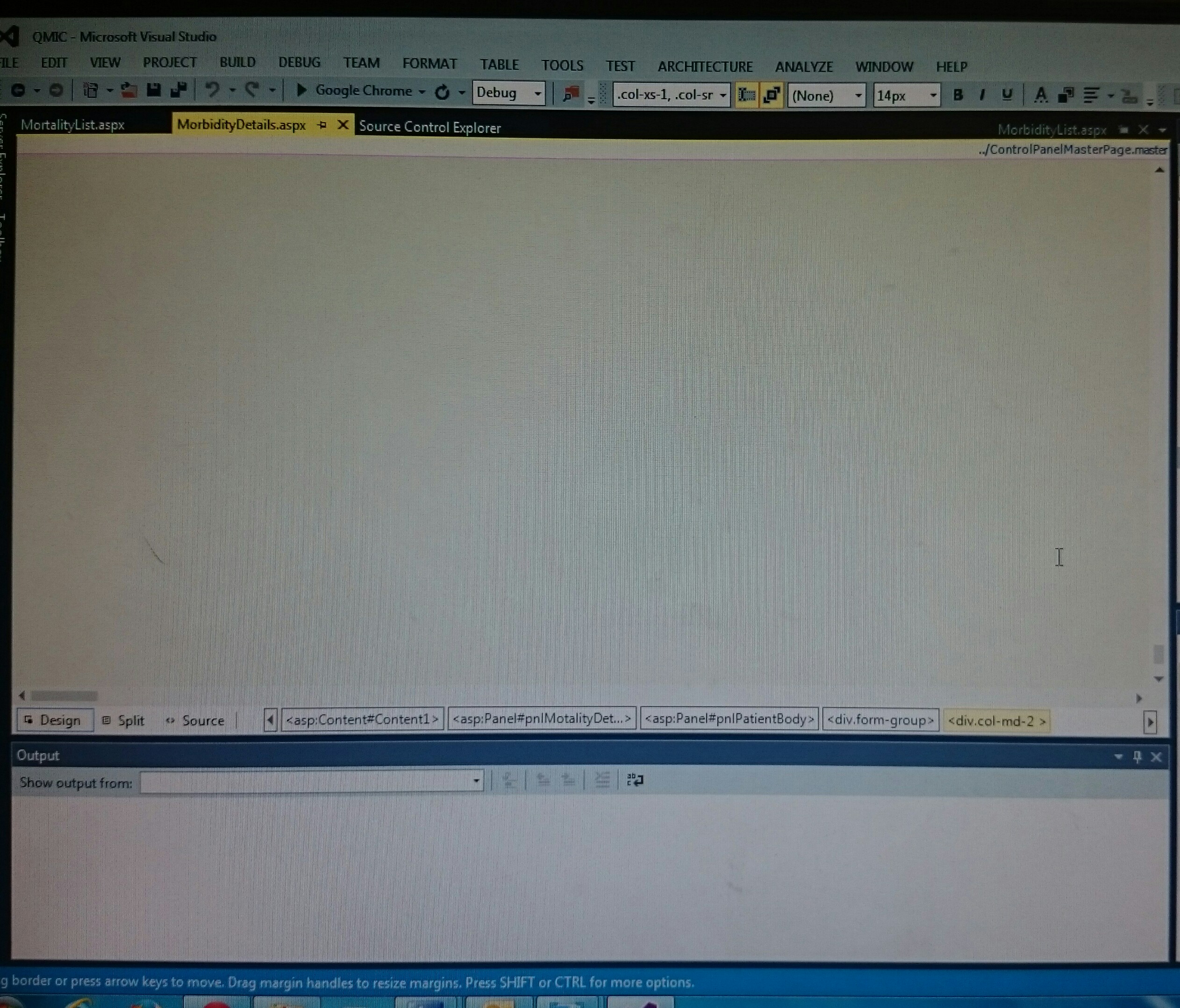 I post picture that is what look like when I go to design view, all object are dissappear and also when I do view browser not show the objects, anybody can help me please.