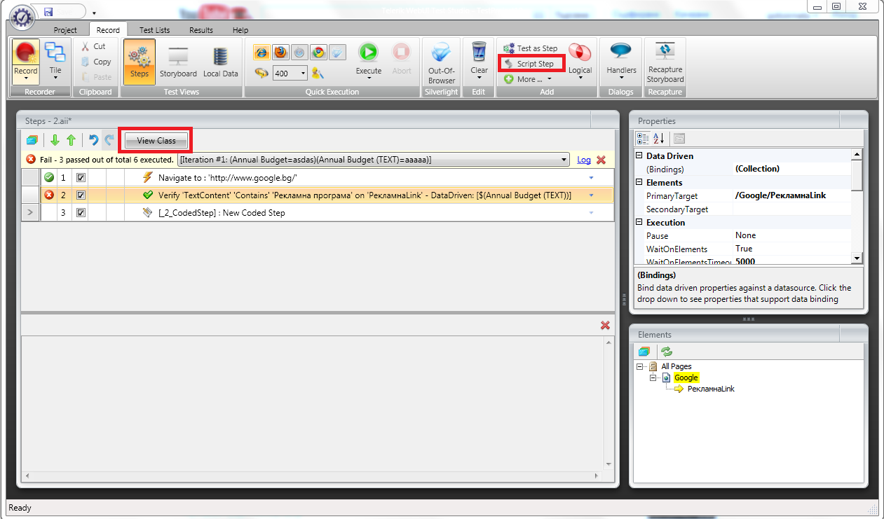 Now open your test. If you don't have any Coded Steps add a "Script Step" (see screenshot 1). Now click on the View Class (screenshot 1) to open the class. Add the following logic inside the BaseWebAiiTest (but not inside a method):