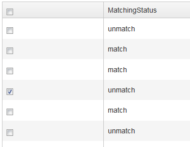 And no need to do anything if i click on checkbox with the column text is Match.