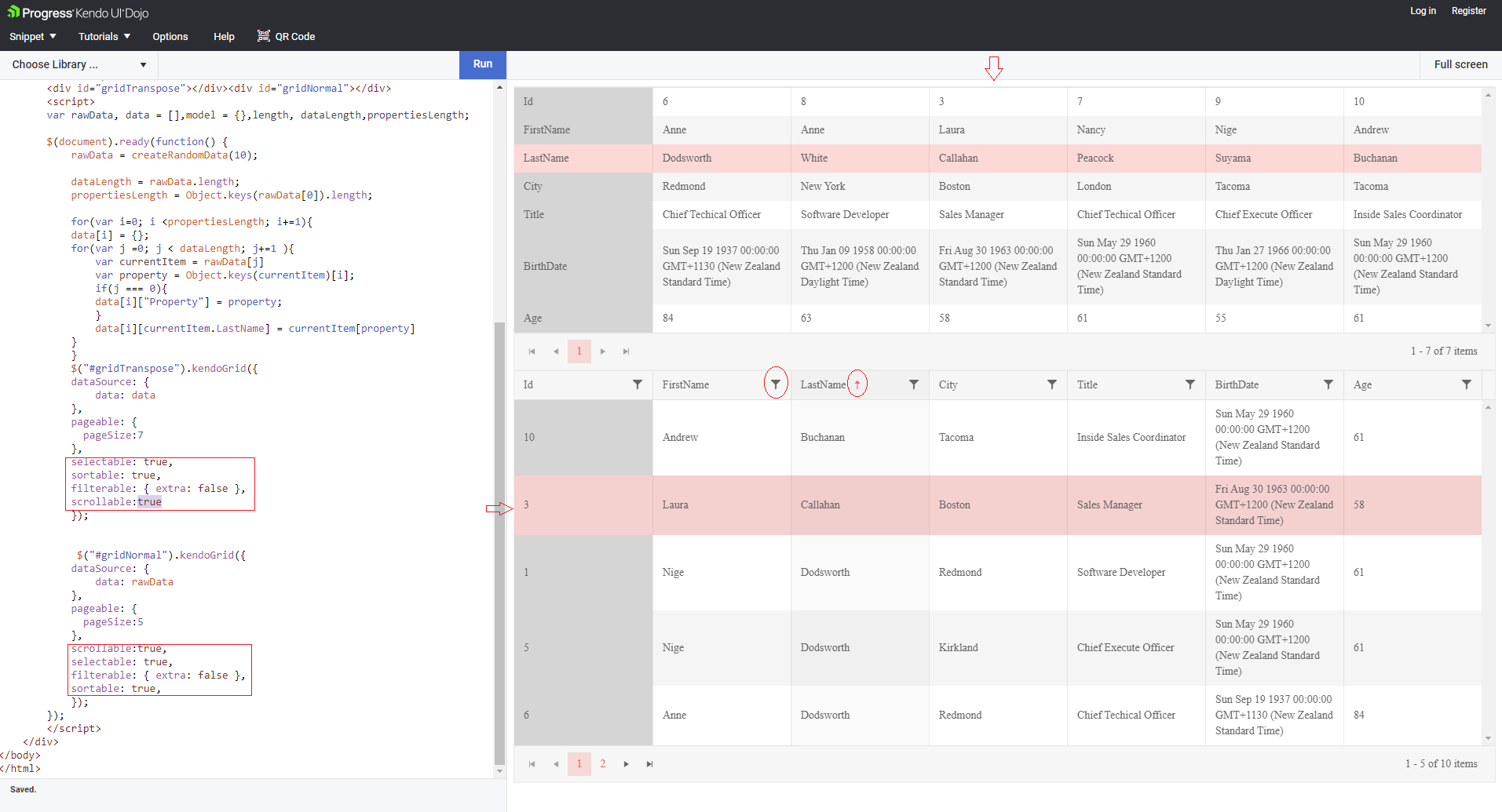 Can I know whether KendoUI provides such functionality to show the grid vertically as the example?