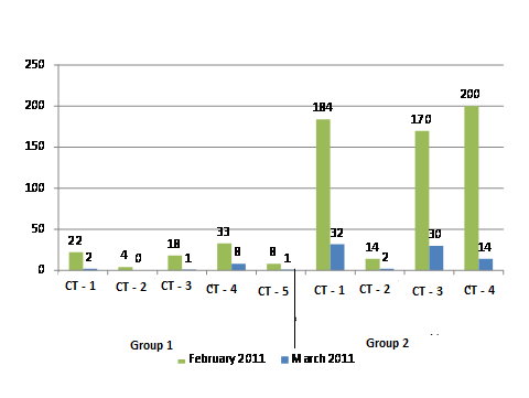 I want to display bar chart with multi level group by. Please see attached image. CT -1 , CT -2 are categories in two different group "Group 1" and "Group 2".