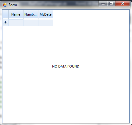 Me.RadGridView1.DataSource = BindingSource1 If Me.RadGridView1.Rows.Count = 0 Then Me.RadGridView1.TableElement.Text = "NO DATA FOUND"End If(see screenshot)