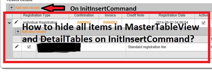 Does anybody know how to hide all grid items in MastertableView and DetailTableVies after clicking on "Add new item" button?