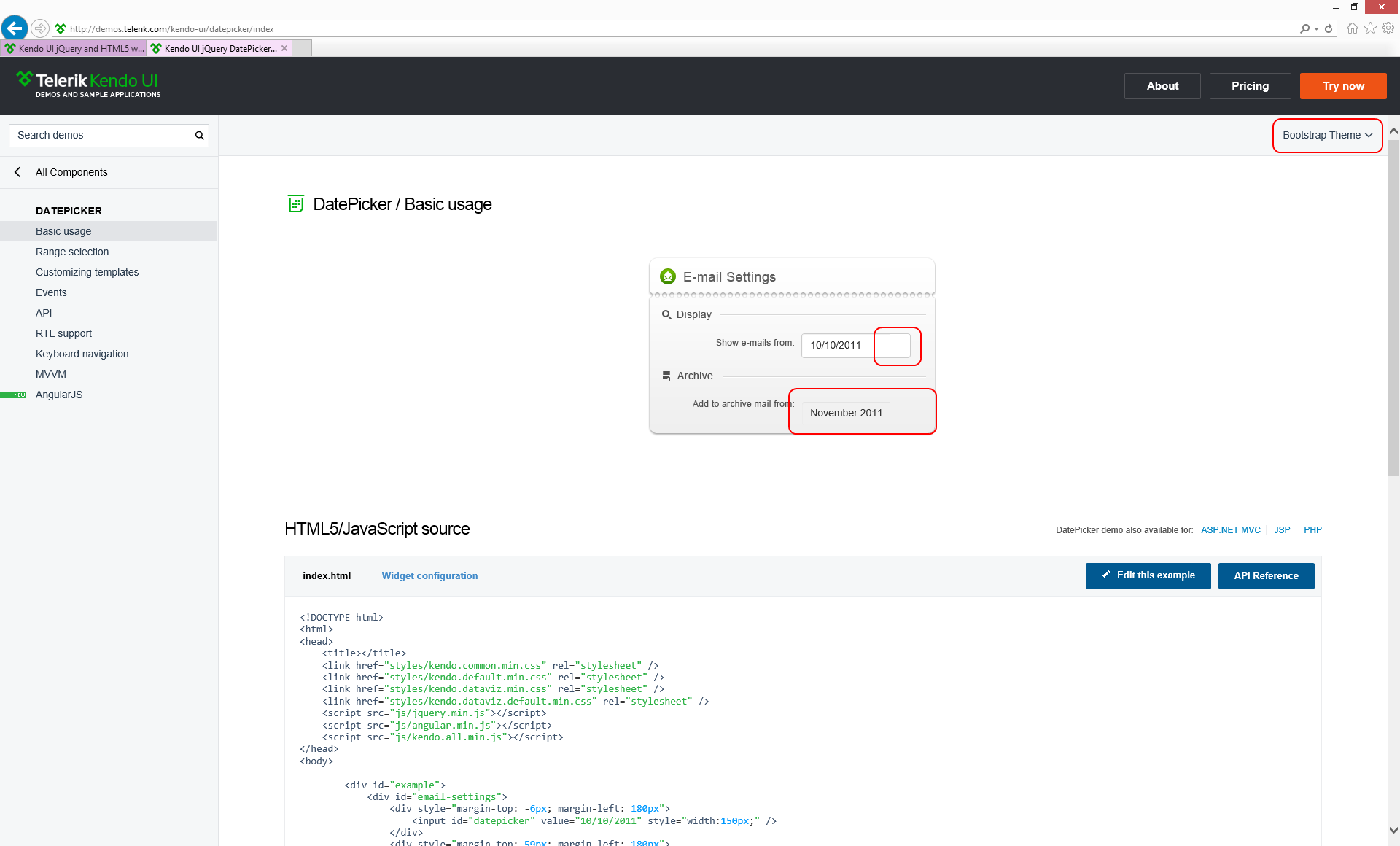 I'm experiencing display problems with the DatePicker and Bootstrap theme in IE11. This also counts to the DateTimePicker and ComboBox widgets. It can be easily reproduced with the DatePicker demo. Attached to this post you will find a screenshot showing the Problem.