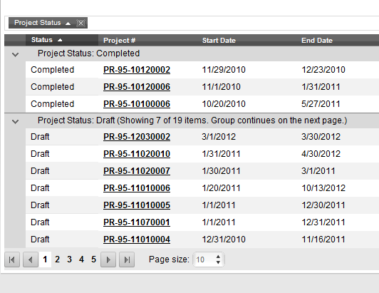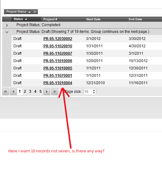 I have set Radgrid page size 10 (Please check attached image1.png). And make group by column1 by drag. I get output at page1 in two groups. Group1 has 3 records and Group2 has 7 records( Ref -Image2.png).