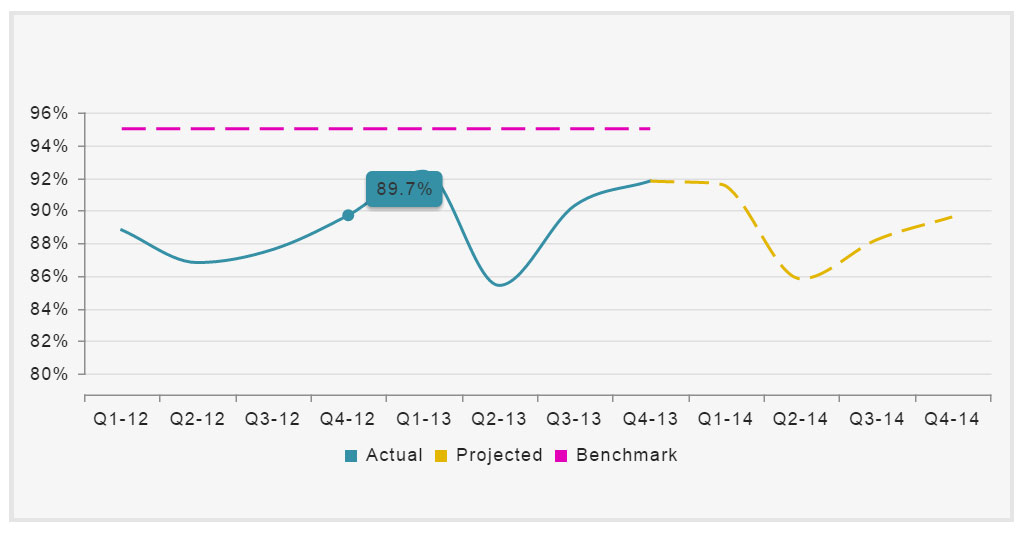 We are trying to display statically the tooltips for each of the 3 individual series, but only for Q4 of each year, where applicable for each series. Could we somehow enable the hover-over effect and prevent the tooltip values from being hidden, or something to that effect? What would be the easiest way to accomplish our goal?