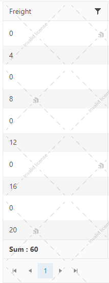 In the attached example, the "sum" displayed in the footer template is the sum of all fields in the "Freight" column. If you want to display only the sum of the fields that are loaded in the current Grid page, you can check this SO thread.