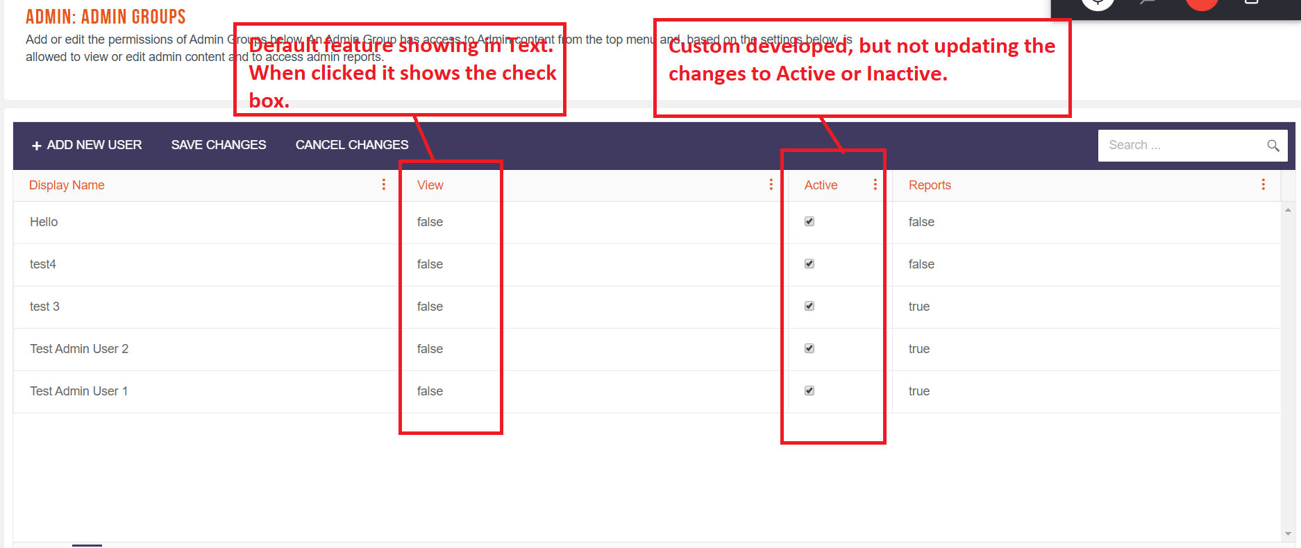 Checkbox UI is different in angular kendo that is not matching with client UI. In Angular Kendo the CheckBox is displaying as True/False text message instead of displaying just as CheckBox.