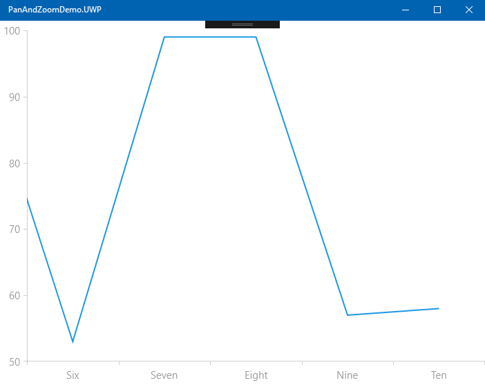 If you go back to the XAML, you'll see that I set the UWP pan to -1, this will shift the axis exactly one viewport-width over. Since I set the zoom level to 2x, this represents exactly half of the viewable area and should start at exactly halfway.. the "Six" category.