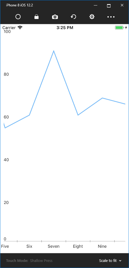 <telerikChart:RadCartesianChart x:Name="Chart"> <telerikChart:RadCartesianChart.ChartBehaviors> <telerikChart:ChartPanAndZoomBehavior PanMode="Horizontal" ZoomMode="Horizontal"/> </telerikChart:RadCartesianChart.ChartBehaviors> <telerikChart:RadCartesianChart.Effects> <effects:PanEffect ZoomLevel="2" NormalizedPan_iOS="4" ScrollOffsetX_Uwp="-1" PanXOffset_Android="-1" /> </telerikChart:RadCartesianChart.Effects> ...</telerikChart:RadCartesianChart>iOS Platform Effect
